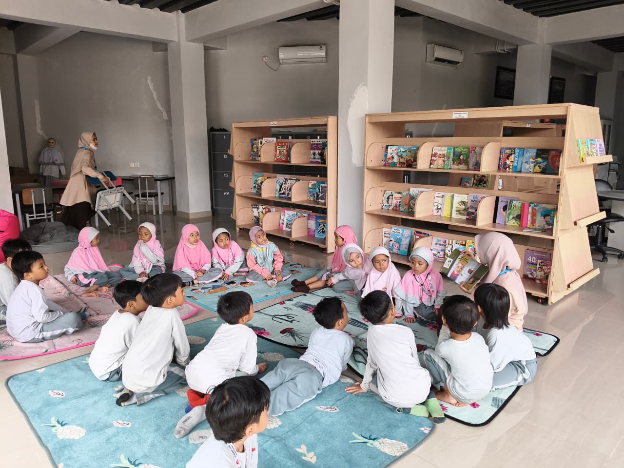 Siswa Preschool SO sedang belajar di perpustakaan