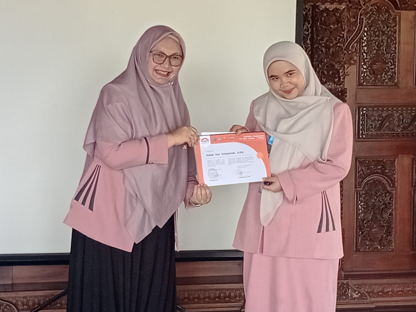 Pada kesempatan ini manajemen menobatkan guru terbaik dengan kriteria tepat waktu. Dua guru yang dinobatkan adalah Mr. Sultan Hajji Nasution, S.Q., S.Ag. dan Ms. Indah Nur Istoqimah, S.Pd..